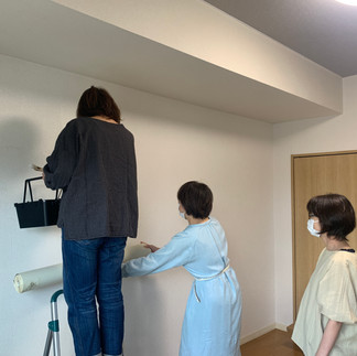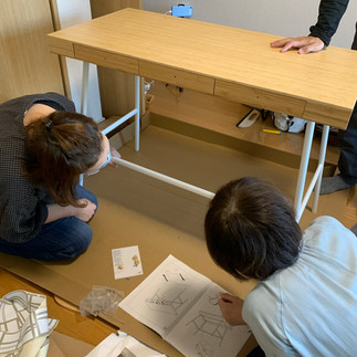 壁紙貼りのイベントが、流れで家具の組み立てまで。