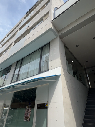 洗練されたコンクリート調の外装が印象的